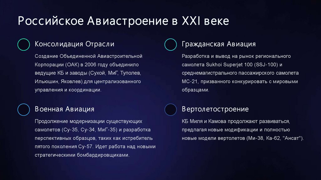 летательных аппаратов. В XXI веке Россия продолжает развивать