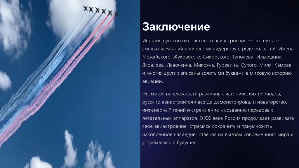 ЗаключениеИстория русского и советского авиастроения — это путь от