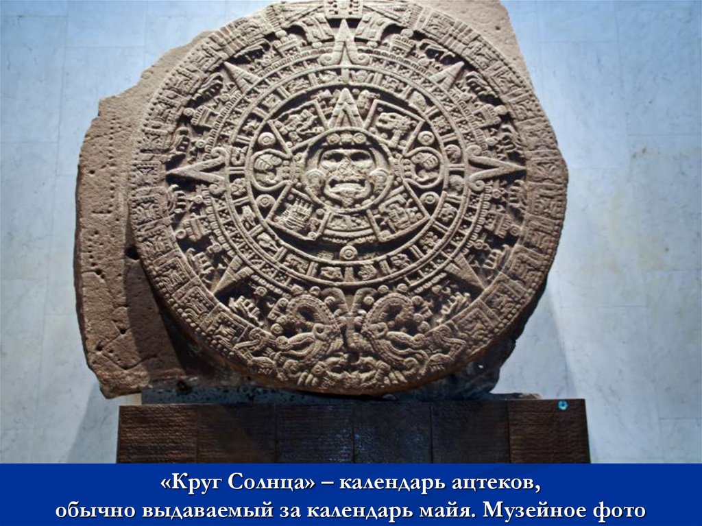 «Круг Солнца» – календарь ацтеков,обычно выдаваемый за календарь майя. Музейное фото