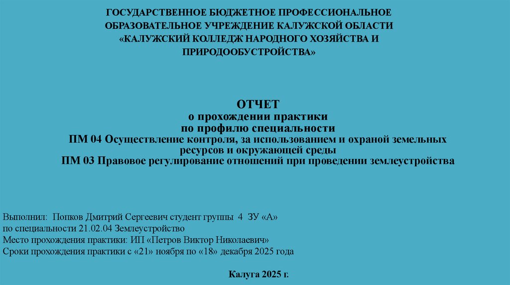 ПМ 04 Осуществление контроля, за использованием и охраной земельных