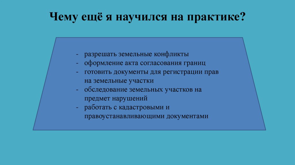 Чему ещё я научился на практике?- разрешать земельные конфликты