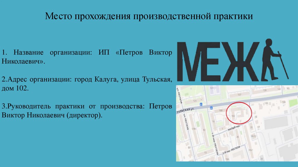 Место прохождения производственной практики1. Название организации: ИП «Петров Виктор