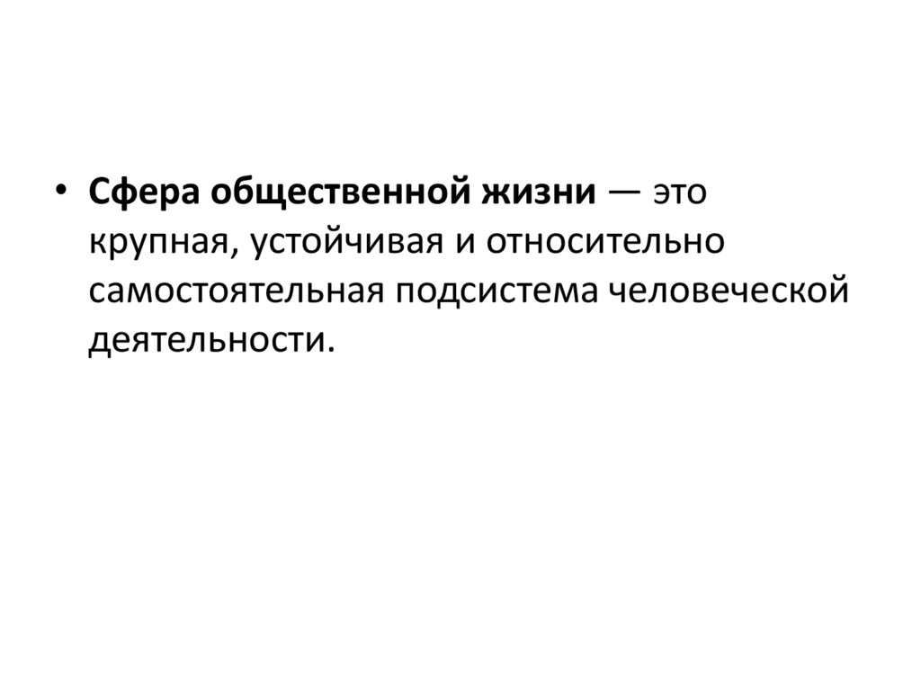 • Сфера общественной жизни — этокрупная, устойчивая и относительно