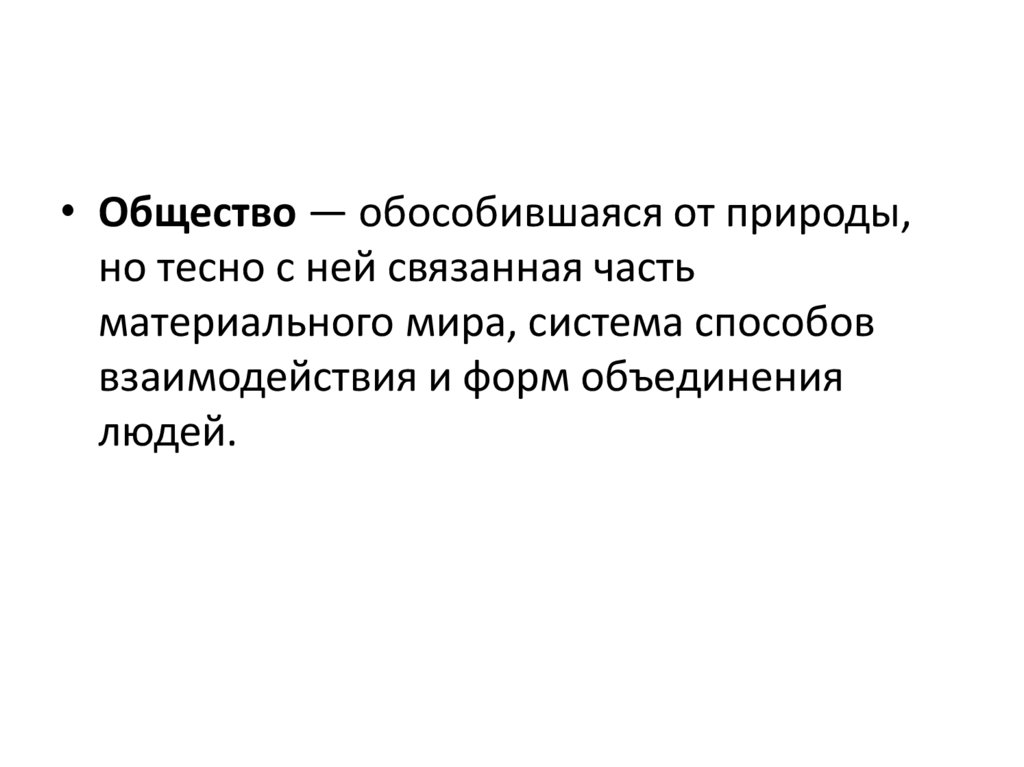 • Общество — обособившаяся от природы,но тесно с ней связанная часть