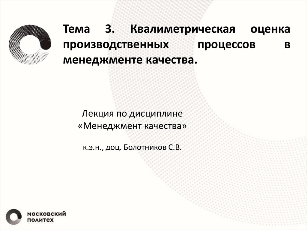 Квалиметрия в исследовании процессов.Основные показатели качества