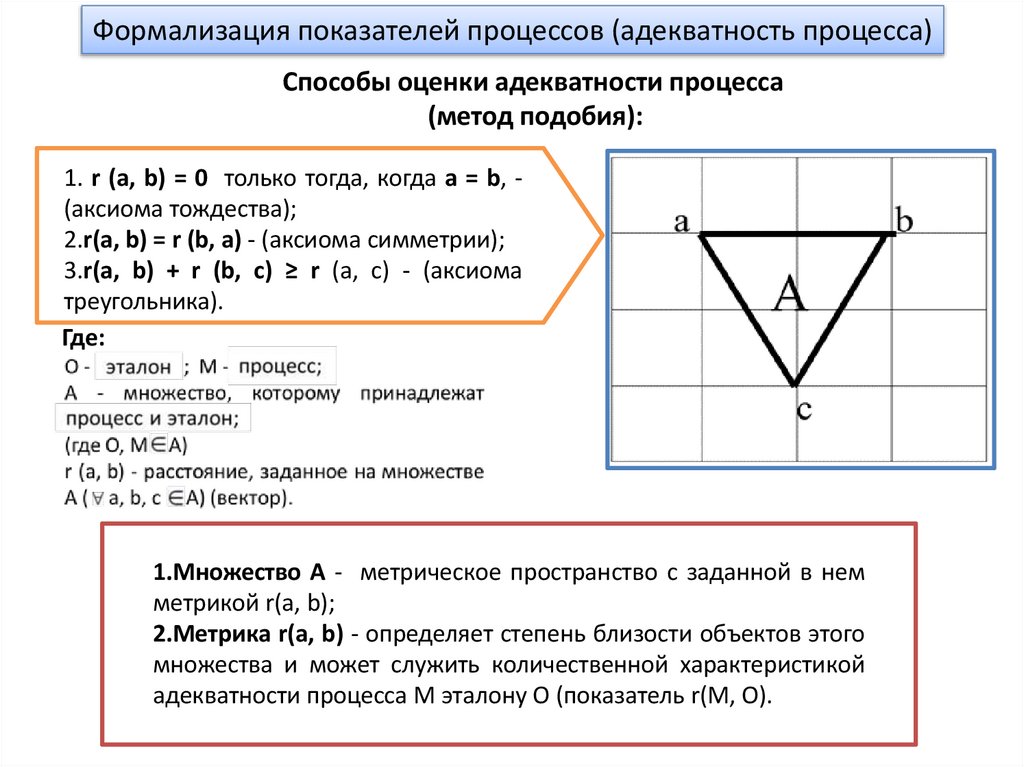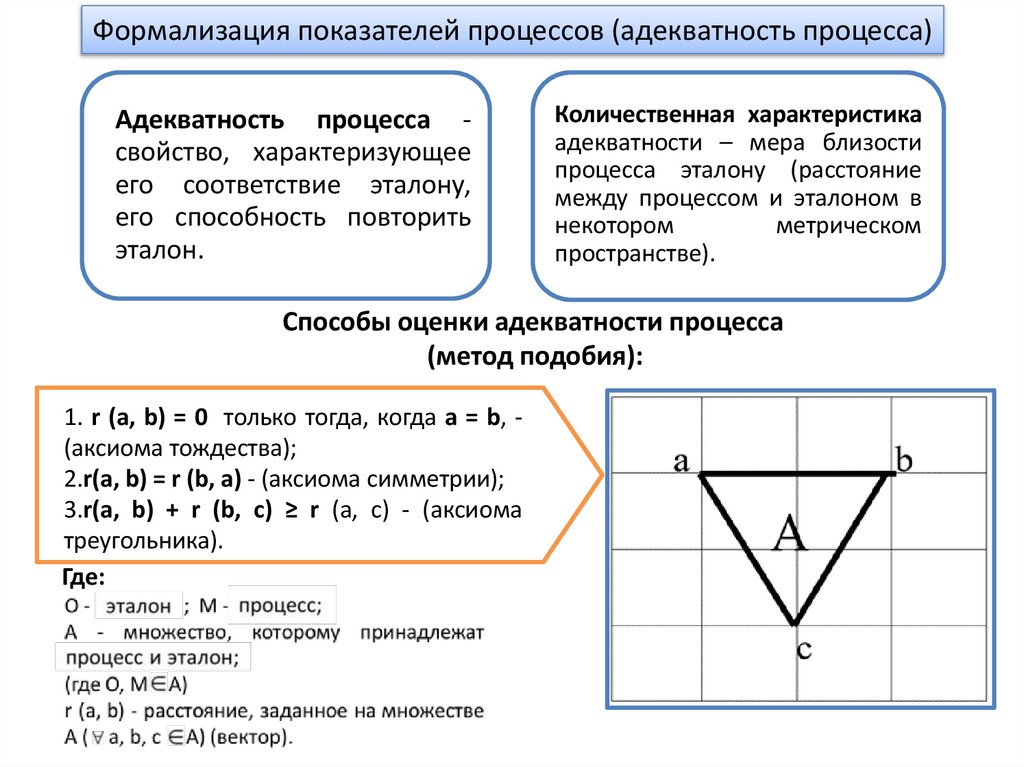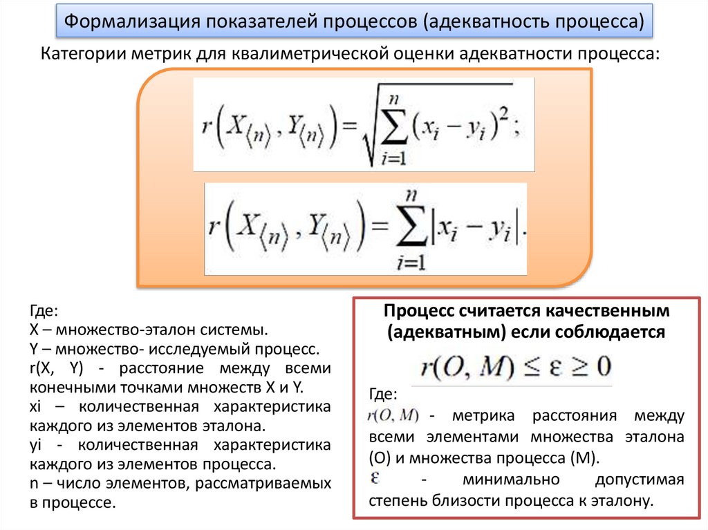 Формализация показателей процессов (адекватность процесса)Способы оценки адекватности процесса