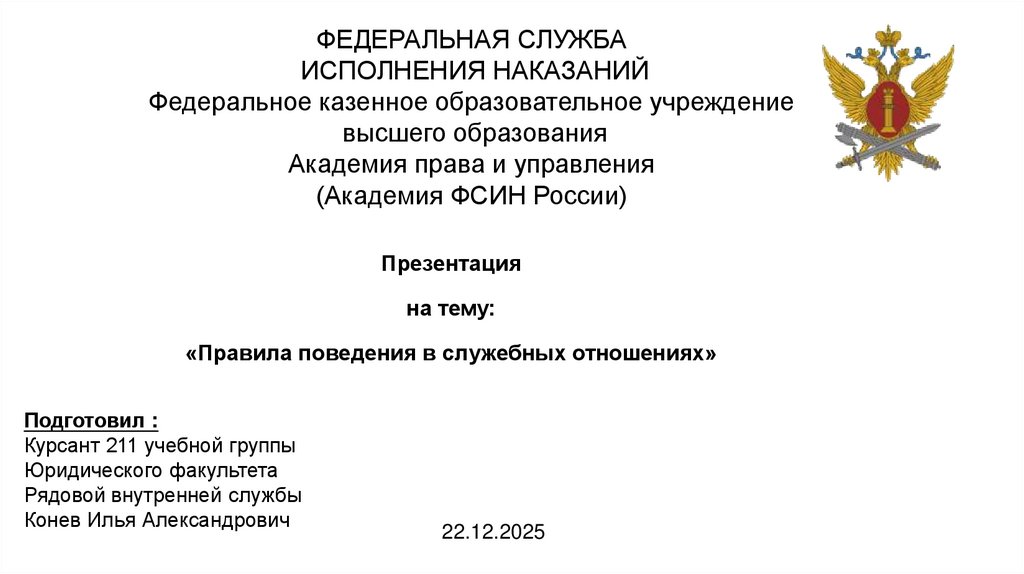 ФЕДЕРАЛЬНАЯ СЛУЖБАИСПОЛНЕНИЯ НАКАЗАНИЙ