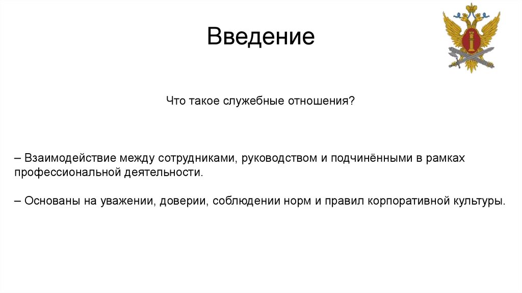 – Взаимодействие между сотрудниками, руководством и подчинёнными в рамках
