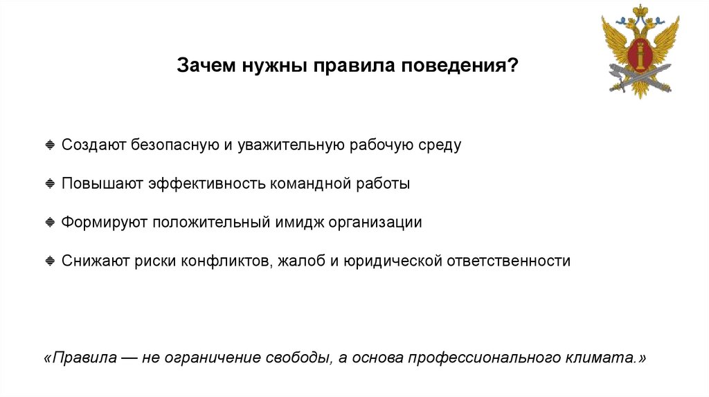 – Основаны на уважении, доверии, соблюдении норм и правил корпоративной культуры.