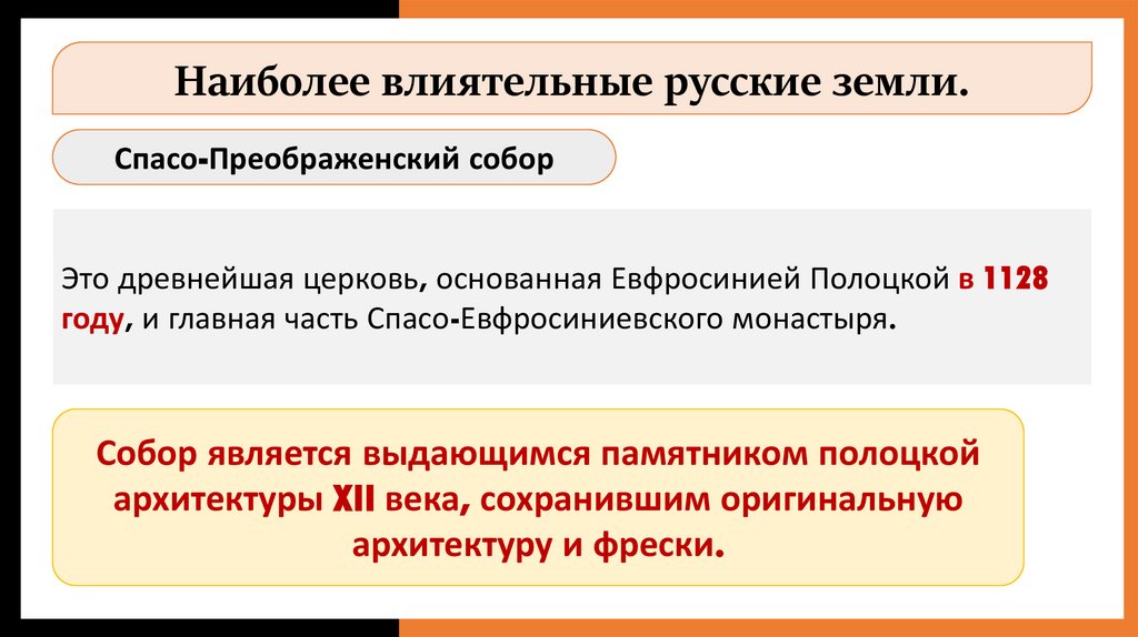 Наиболее влиятельные русские земли.Спасо-Преображенский собор