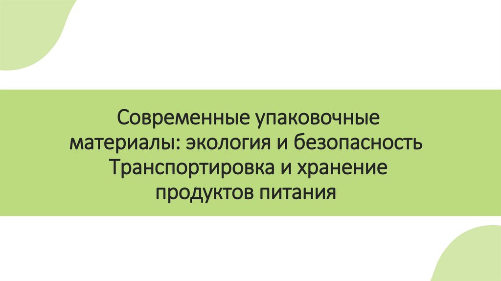 1. Современные упаковочные материалы: экология и безопасность Транспортировка и хранение продуктов питания