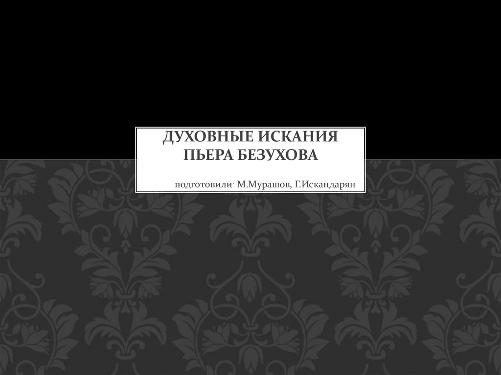 ДУХОВНЫЕ ИСКАНИЯПЬЕРА БЕЗУХОВА