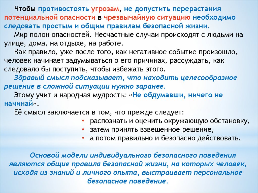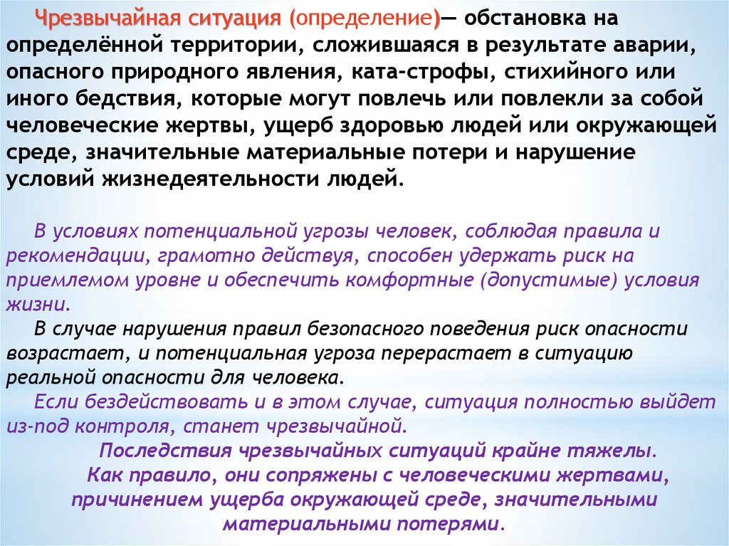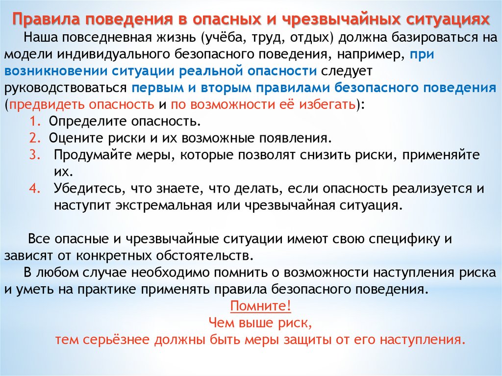 Правила поведения в опасных и чрезвычайных ситуацияхНаша повседневная жизнь (учёба, труд, отдых) должна базироваться на