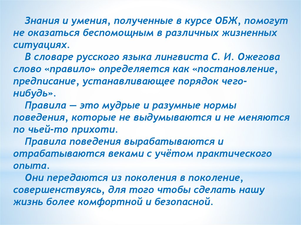 Знания и умения, полученные в курсе ОБЖ, помогутне оказаться беспомощным в различных жизненных