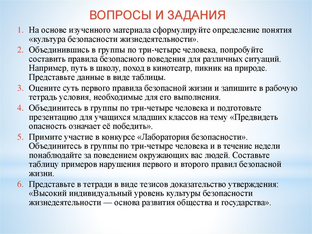 3. Оцените суть первого правила безопасной жизни и запишите в рабочую