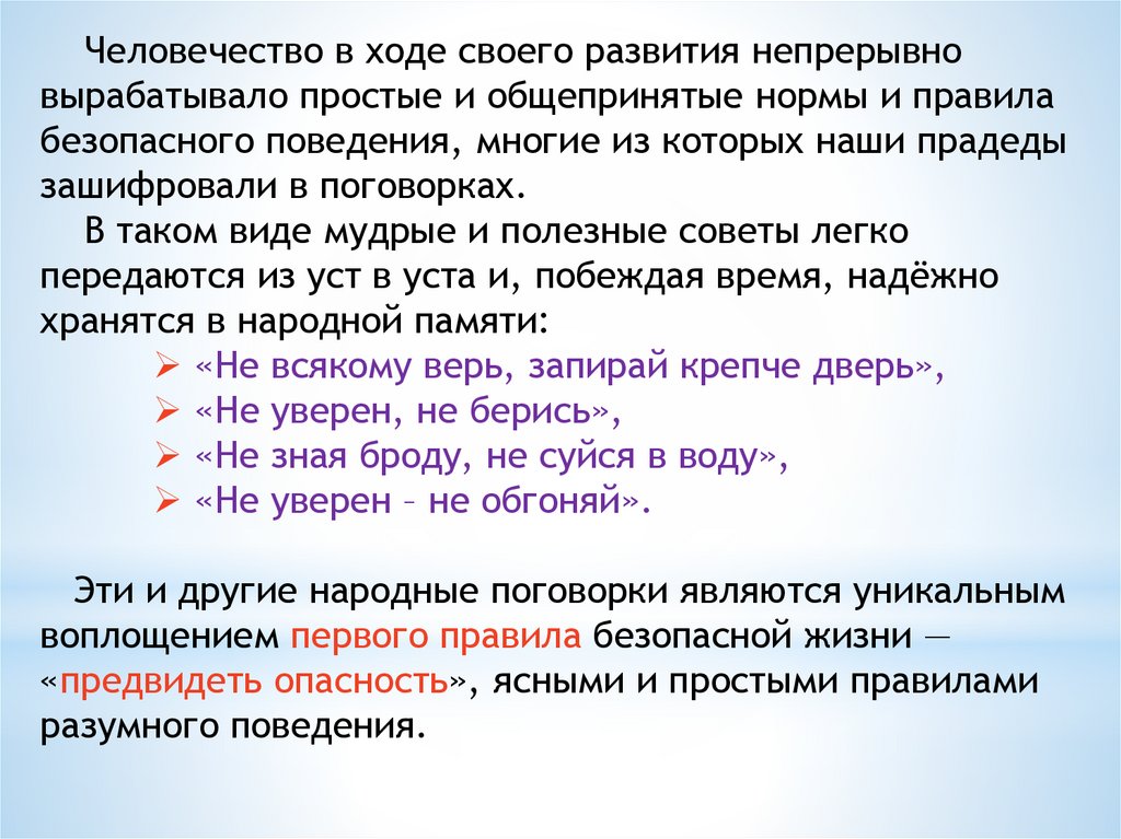 Человечество в ходе своего развития непрерывновырабатывало простые и общепринятые нормы и правила