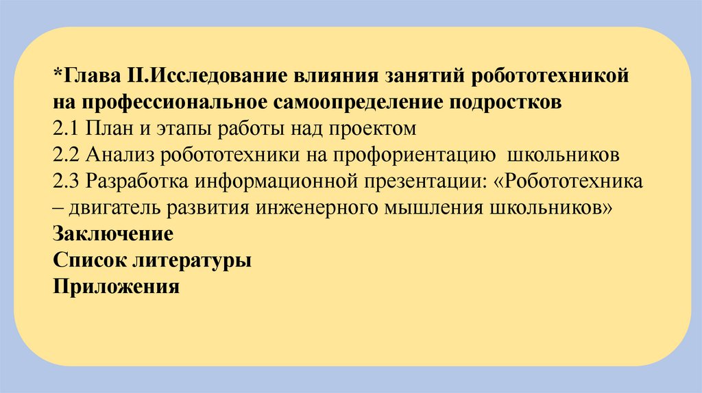*Глава II.Исследование влияния занятий робототехникойна профессиональное самоопределение подростков