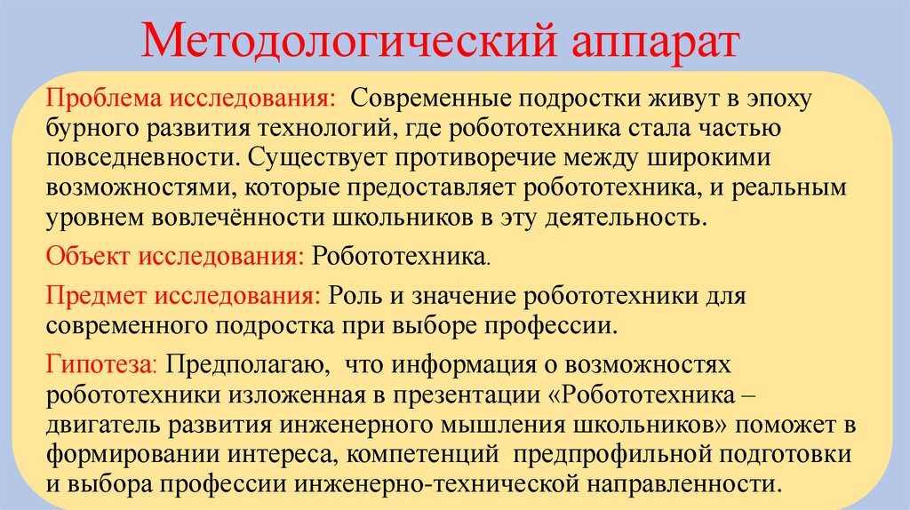 Методологический аппаратПроблема исследования: Современные подростки живут в эпоху
