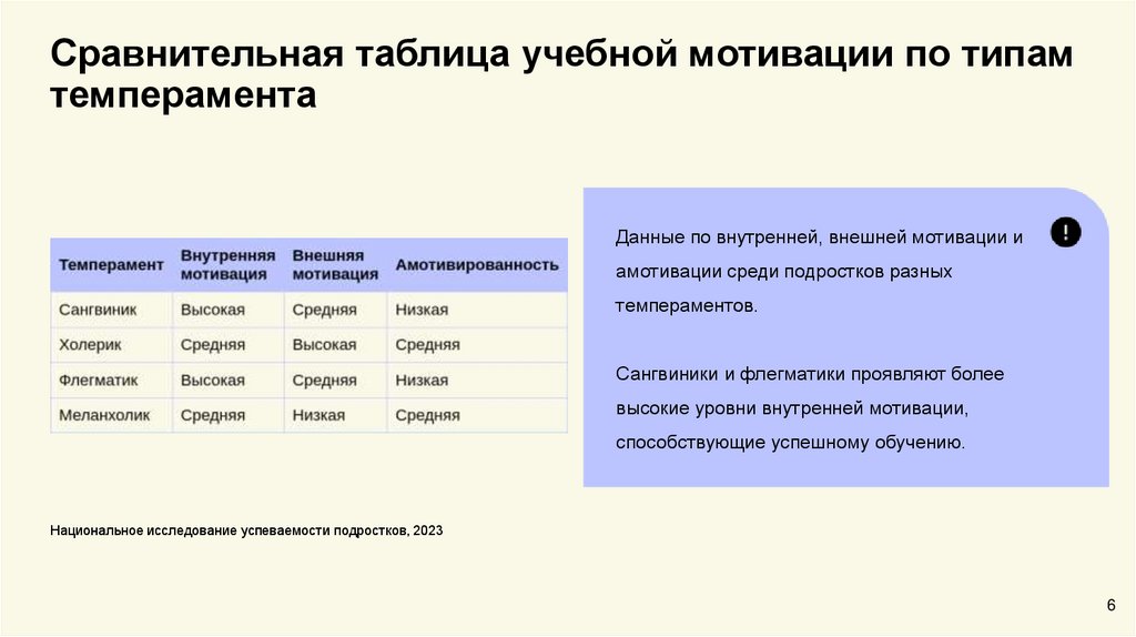 Сравнительная таблица учебной мотивации по типамтемперамента