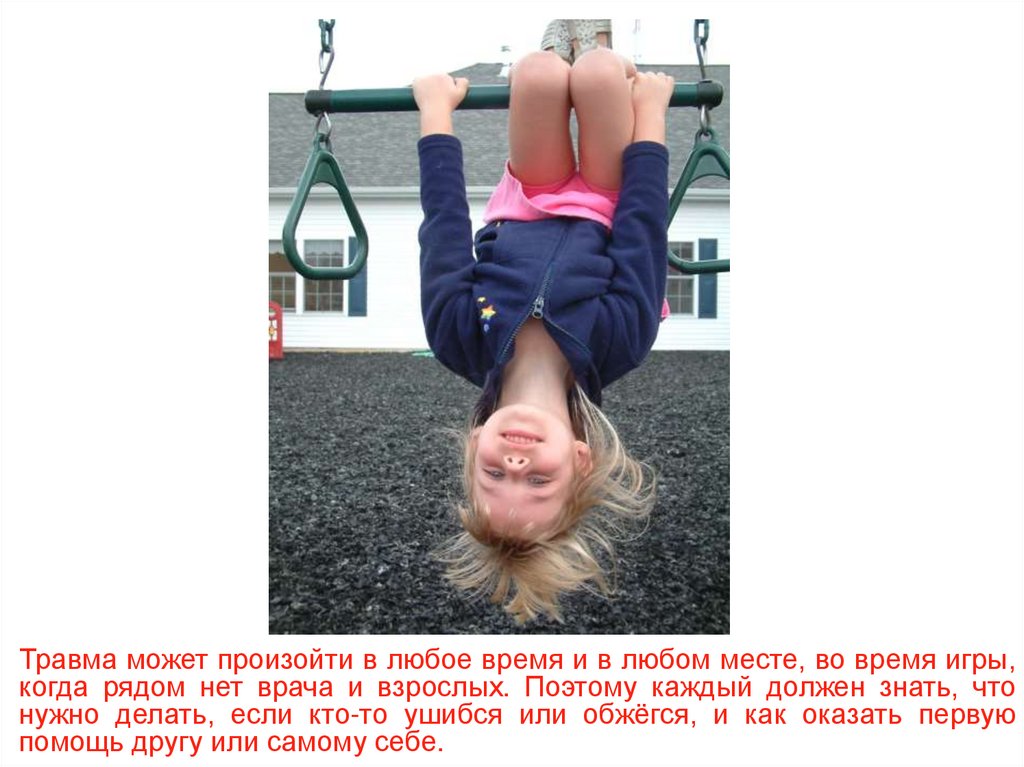 Травма может произойти в любое время и в любом месте, во время игры,когда рядом нет врача и взрослых. Поэтому каждый должен знать, что