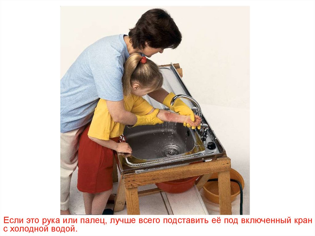 Если это рука или палец, лучше всего подставить её под включенный кранс холодной водой.