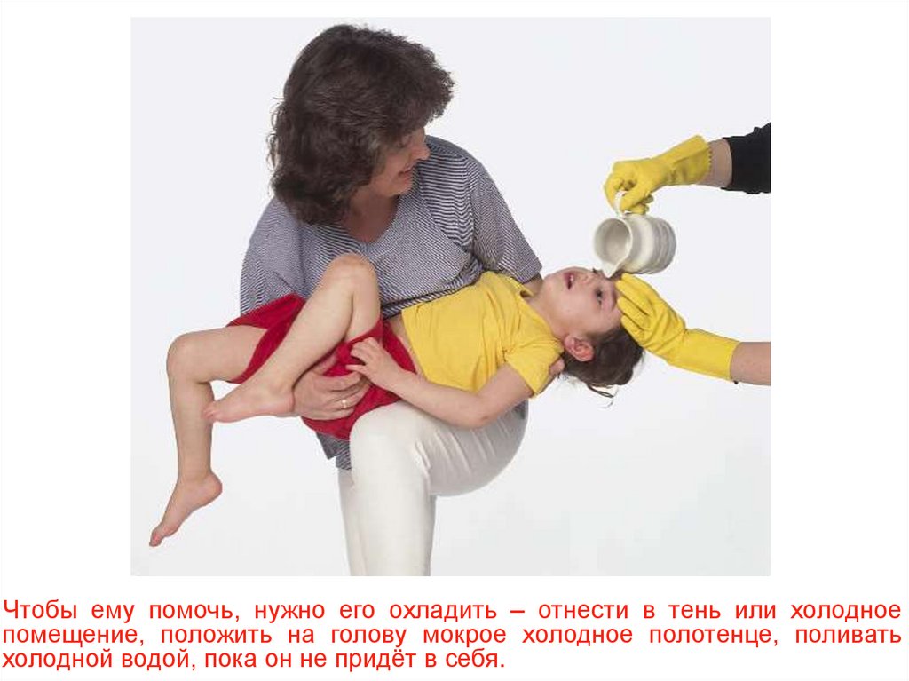 Чтобы ему помочь, нужно его охладить – отнести в тень или холодноепомещение, положить на голову мокрое холодное полотенце, поливать