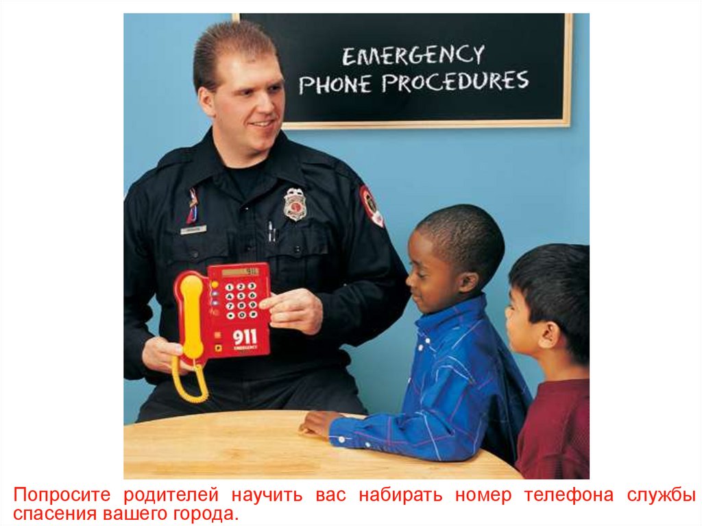 Попросите родителей научить вас набирать номер телефона службыспасения вашего города.