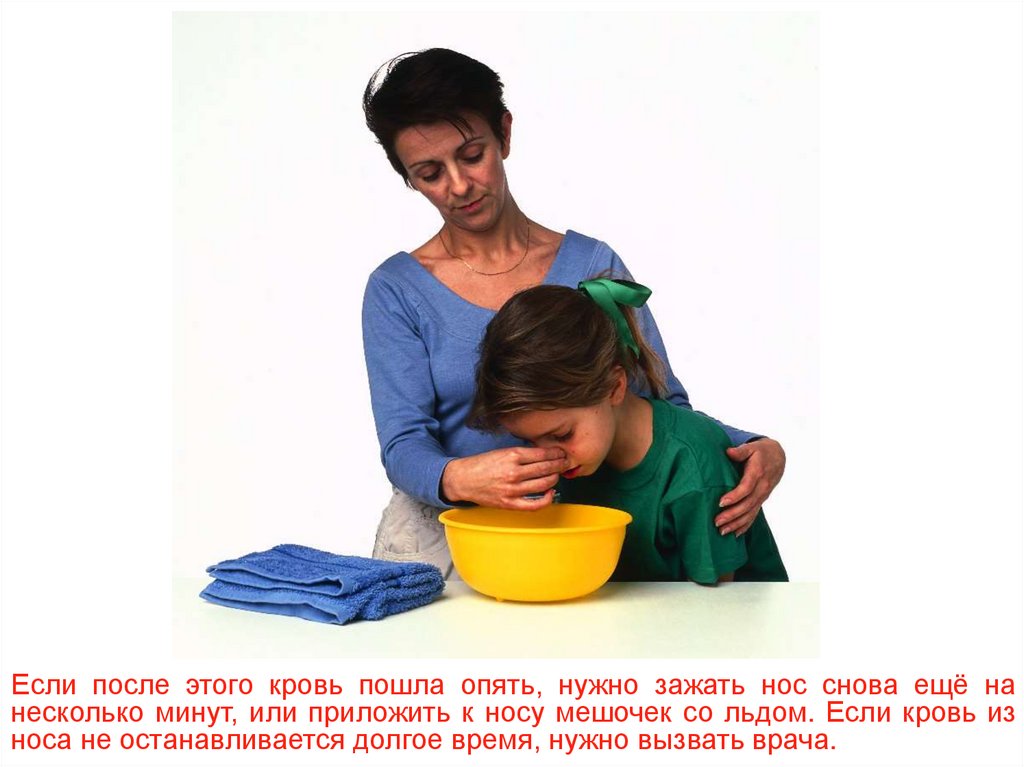 Если после этого кровь пошла опять, нужно зажать нос снова ещё нанесколько минут, или приложить к носу мешочек со льдом. Если кровь из