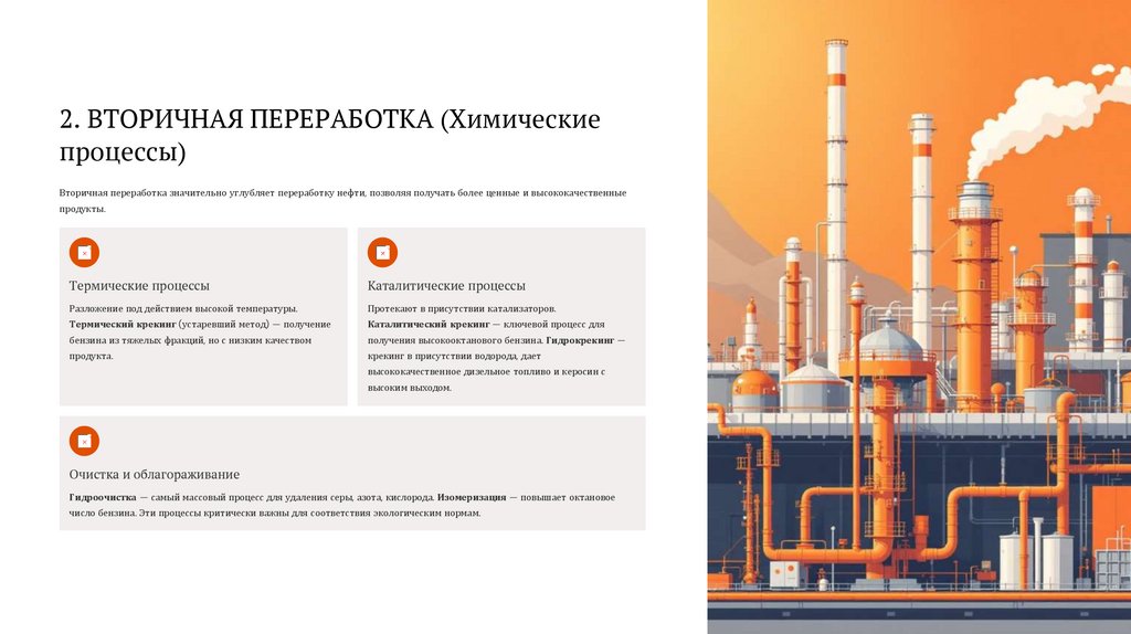 Вторичная переработка значительно углубляет переработку нефти, позволяя получать более ценные и высококачественные