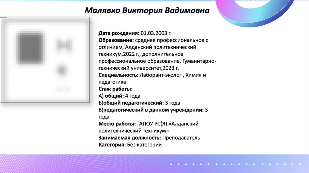 Малявко Виктория ВадимовнаДата рождения: 01.03.2003 г.