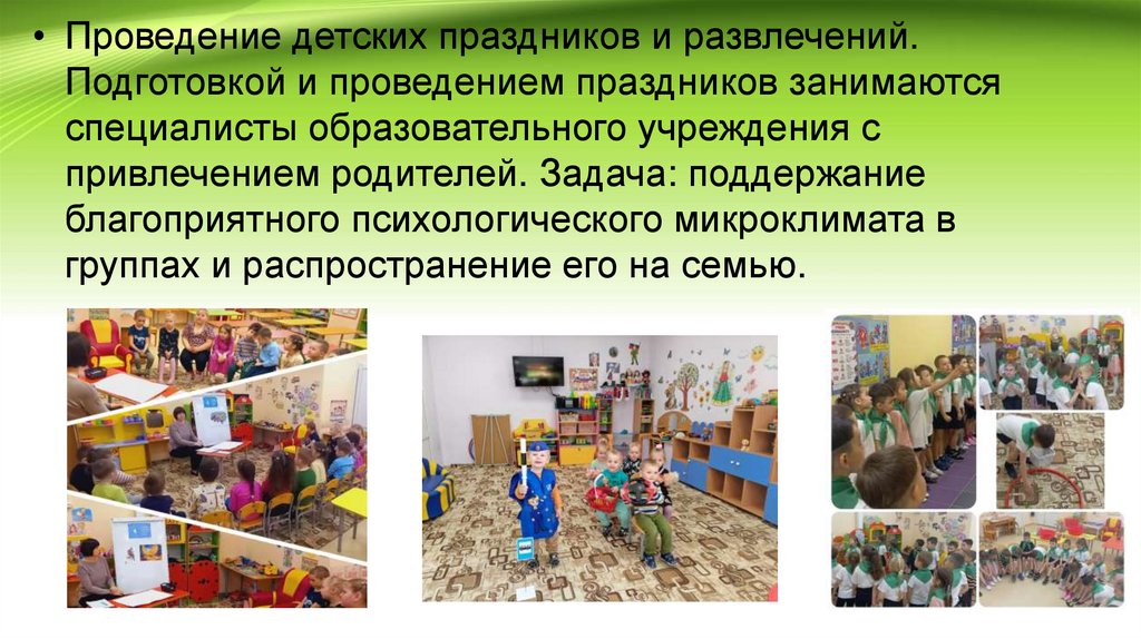 • Проведение детских праздников и развлечений.Подготовкой и проведением праздников занимаются