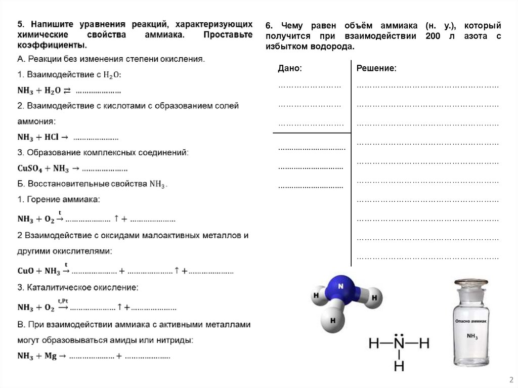 6. Чему равен объём аммиака (н. у.), которыйполучится при взаимодействии 200 л азота с