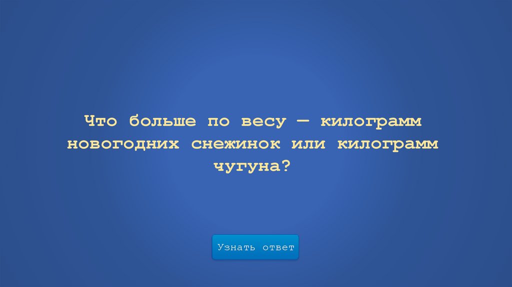 Что больше по весу — килограммновогодних снежинок или килограмм