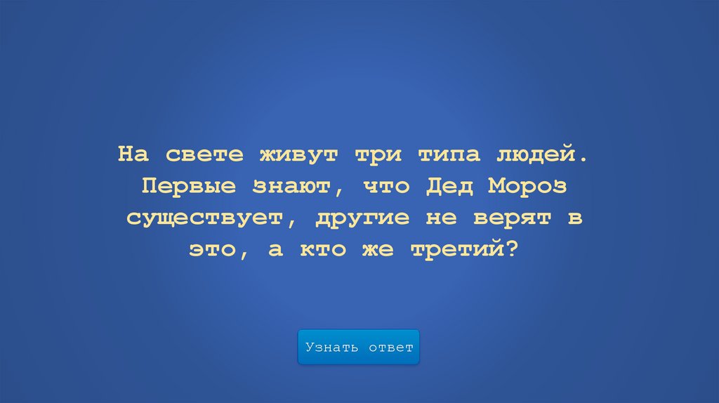 На свете живут три типа людей.Первые знают, что Дед Мороз