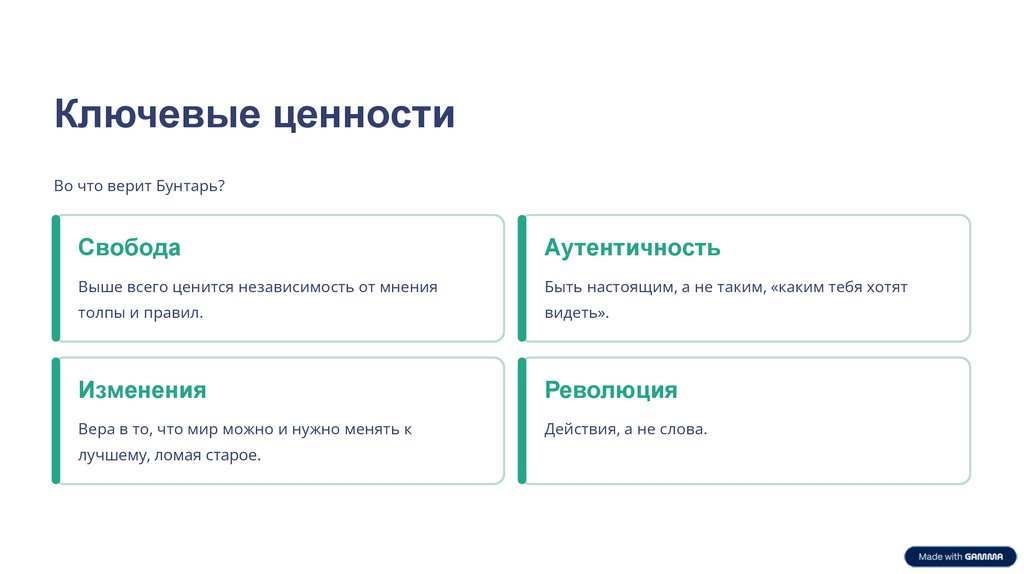 Ключевые ценностиВо что верит Бунтарь?