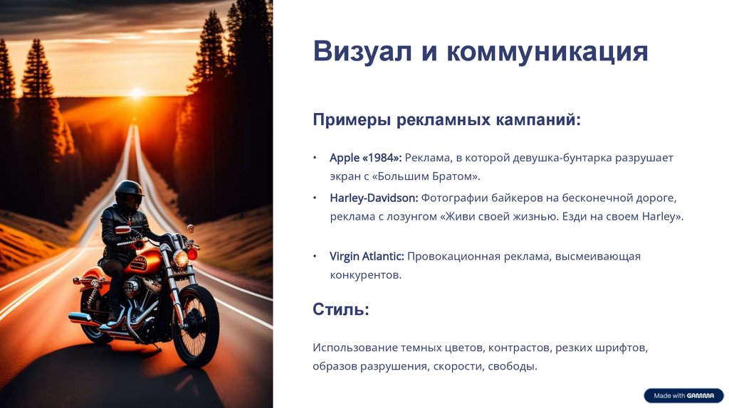 Harley-Davidson: Бунт на двух колесах, свобода дороги, образ байкера-одиночки.
