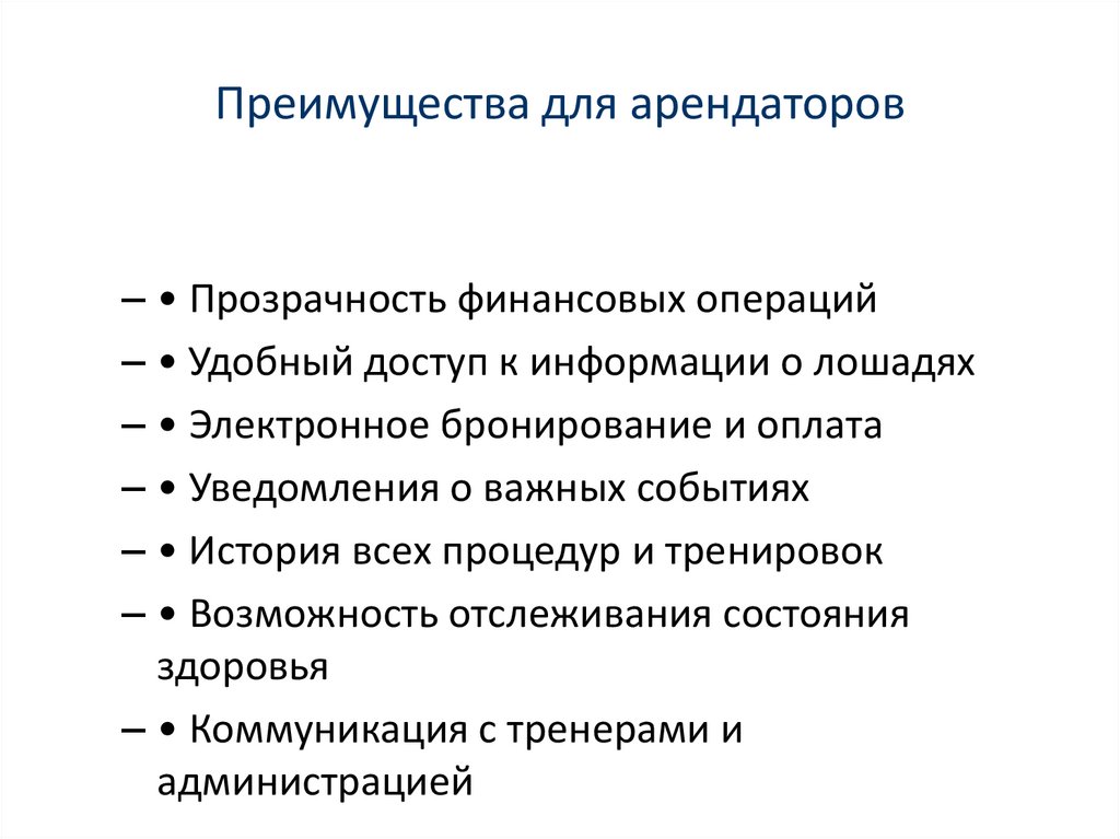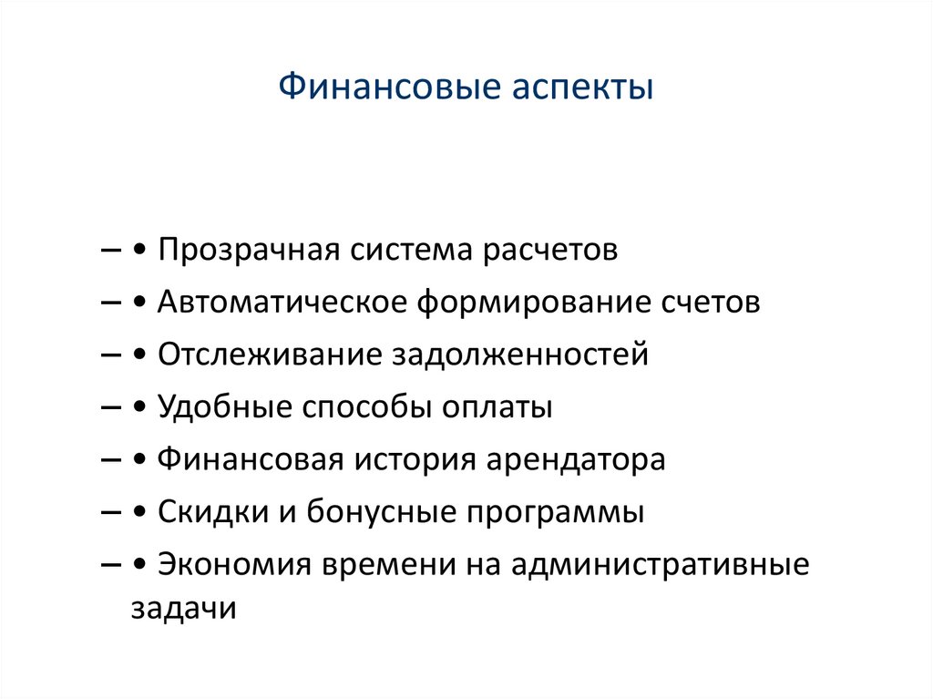 Преимущества для арендаторов– • Прозрачность финансовых операций