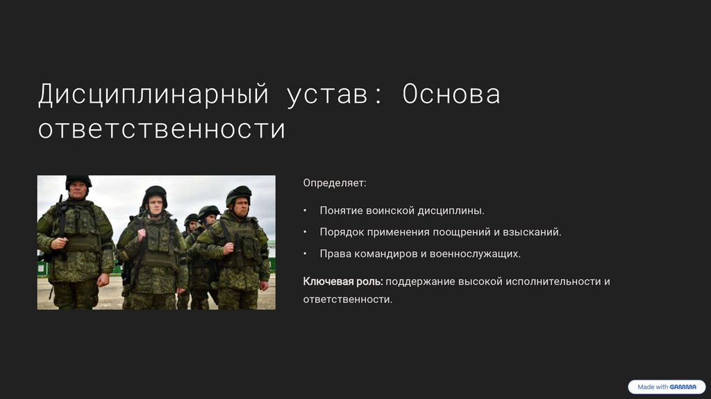 Ключ к поддержанию высокого уровня дисциплины, порядка и боеготовности.