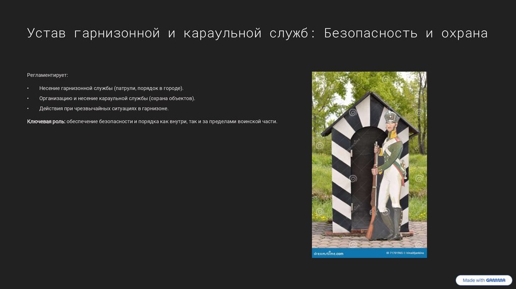 Устав гарнизонной и караульной служб: Безопасность и охранаРегламентирует: