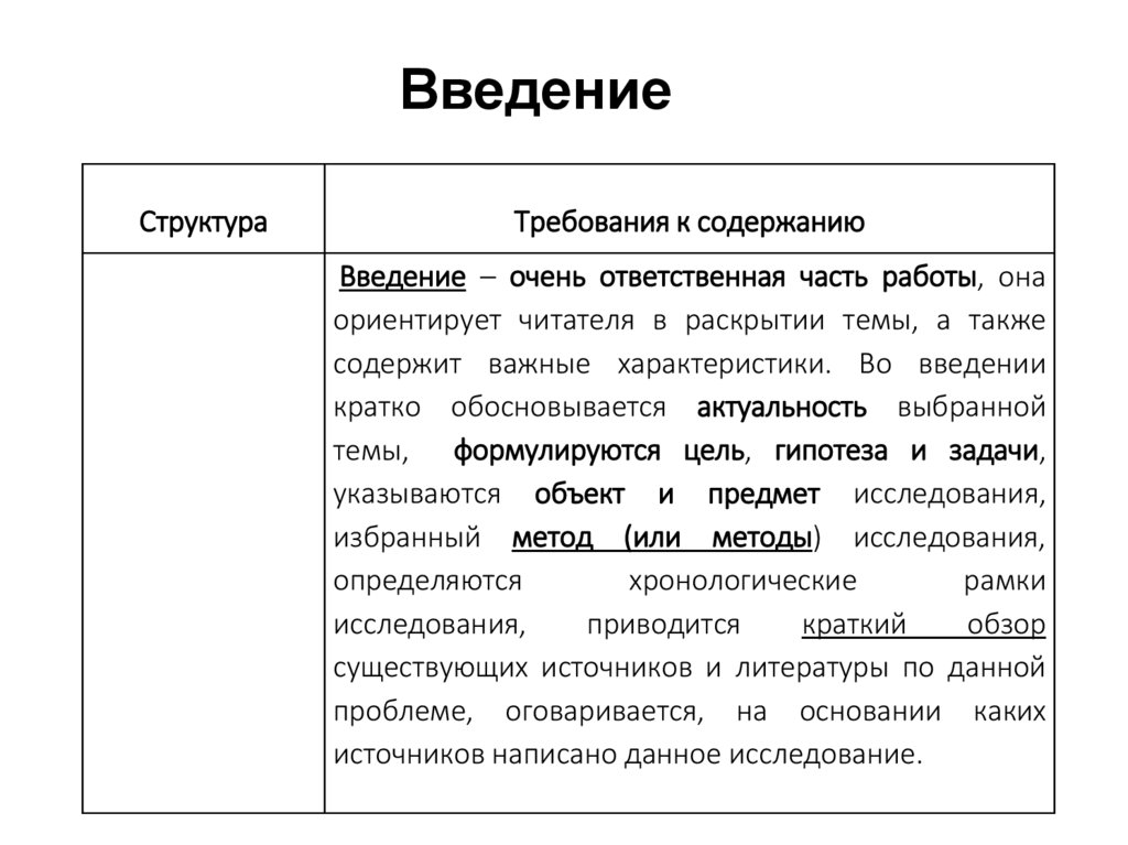 Выразить в ней главное содержание всего исследования,обозначить объект и предмет исследования.