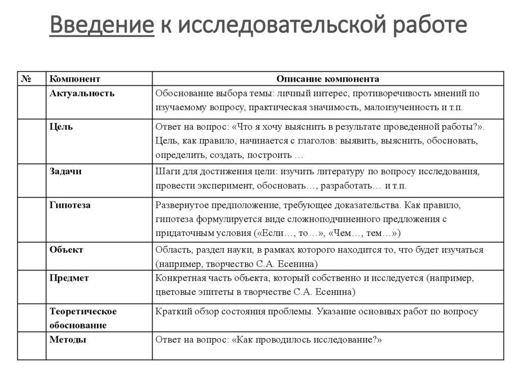 • Цель исследования – какой результат предполагается получить.