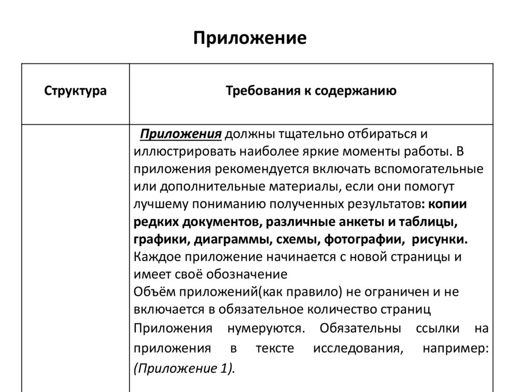 приложения в тексте исследования, например: