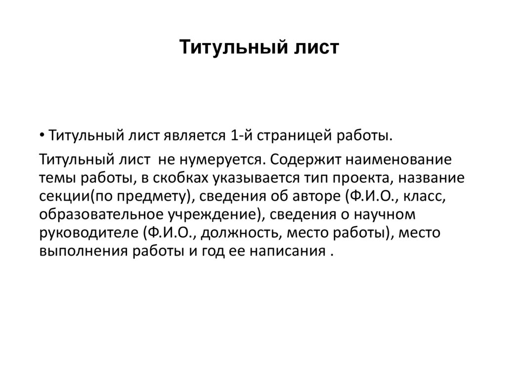 Титульный лист• Титульный лист является 1-й страницей работы.