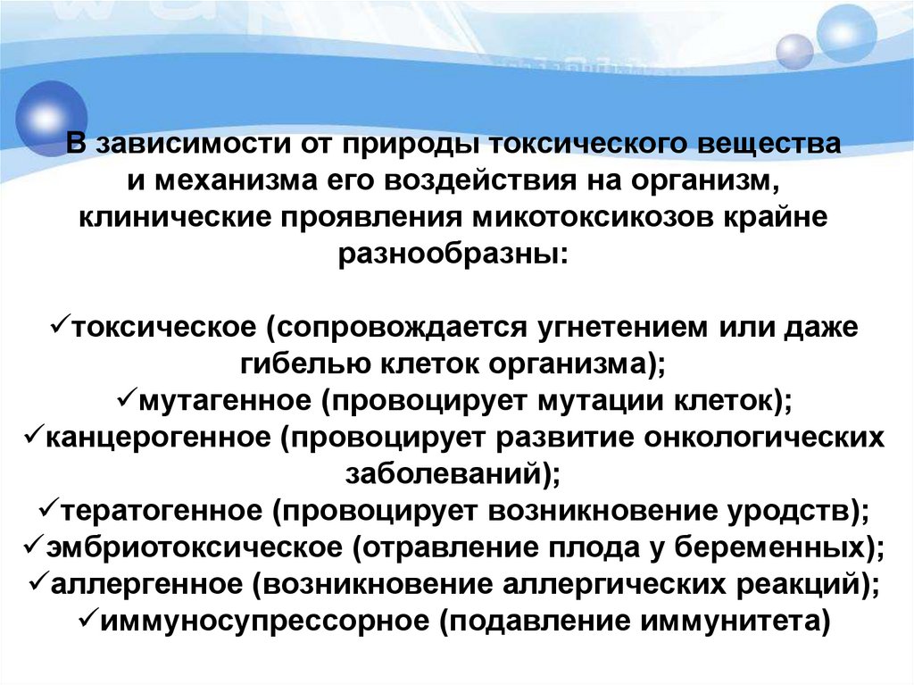В дальнейшем лечение микотоксикозовнаправлено на профилактику