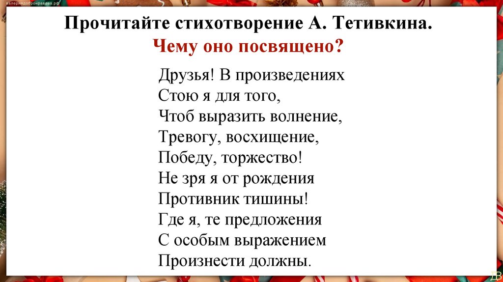 Прочитайте стихотворение А. Тетивкина.Чему оно посвящено?