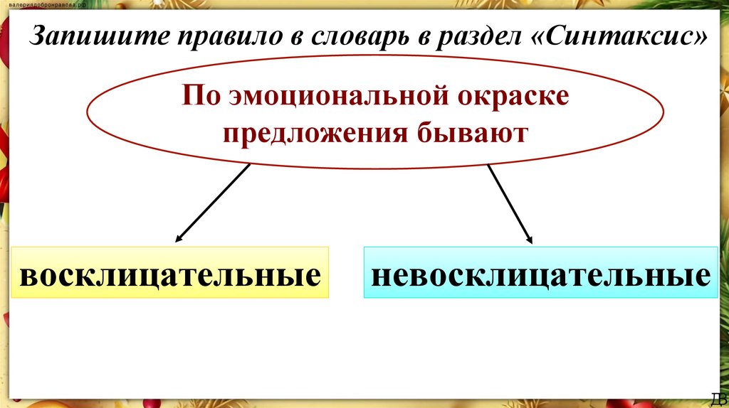 Запишите правило в словарь в раздел «Синтаксис»По эмоциональной окраске