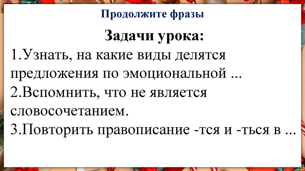 Продолжите фразыЗадачи урока: