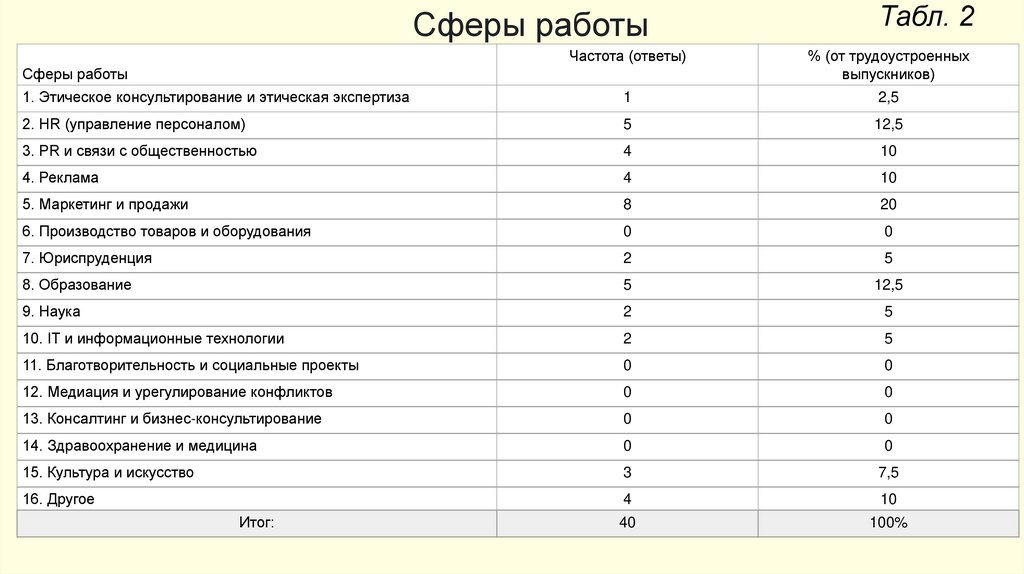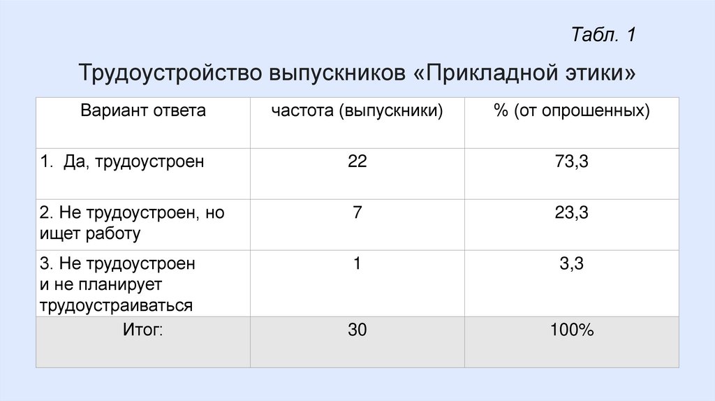 Табл. 1Трудоустройство выпускников «Прикладной этики»