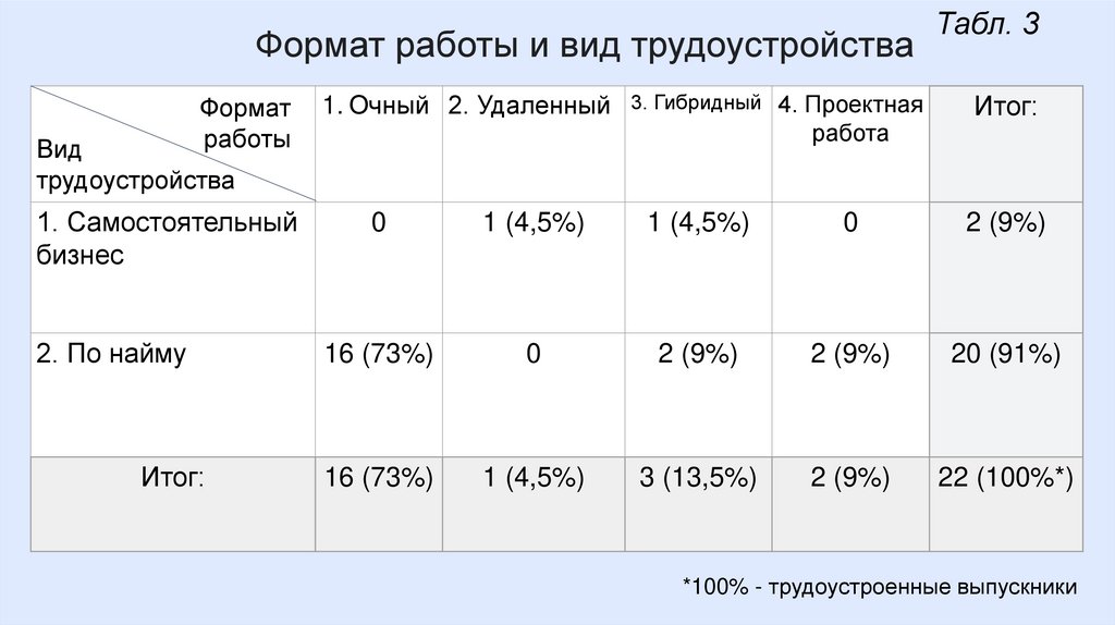 *100% - трудоустроенные выпускники