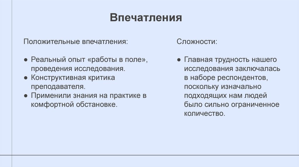 ВпечатленияПоложительные впечатления: